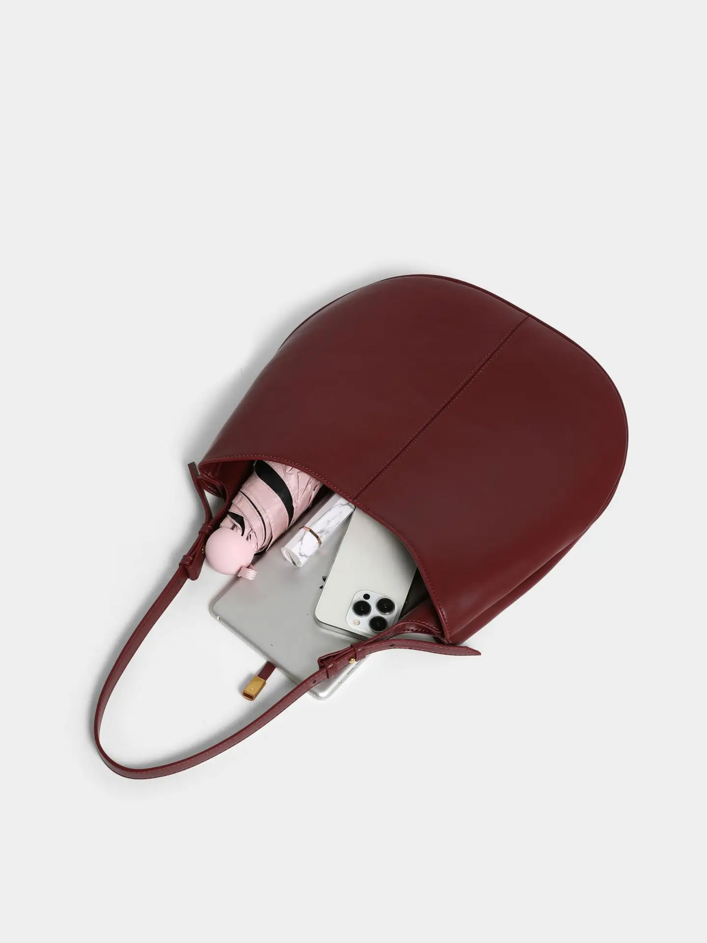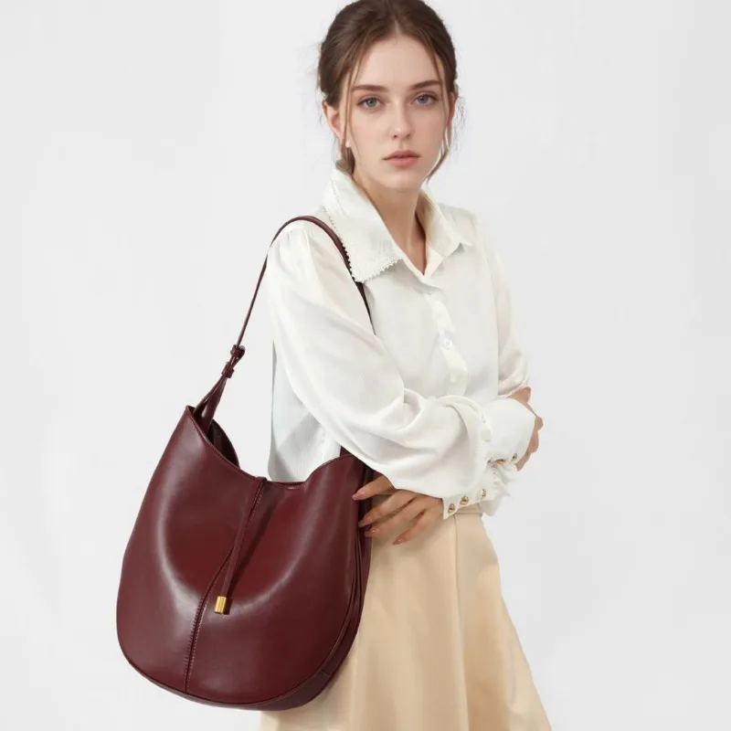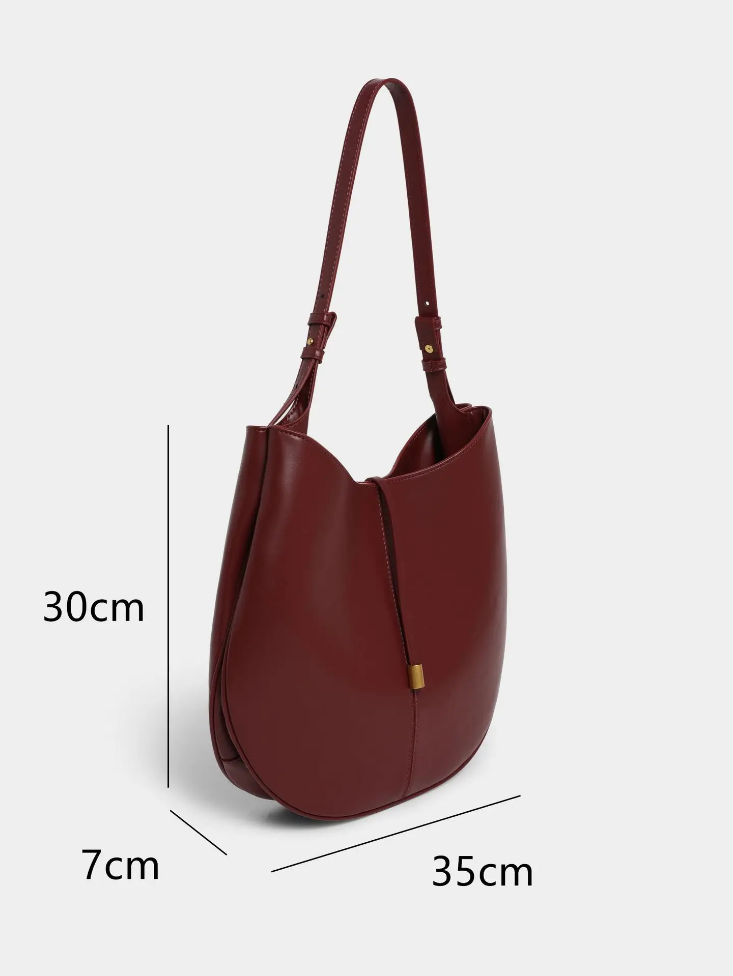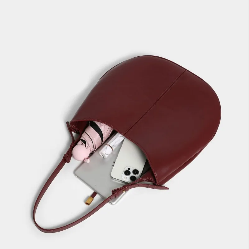 2025 New Women’s Bag Crimson Metal Accessories Pendant Single Shoulder Large Bucket Bag
