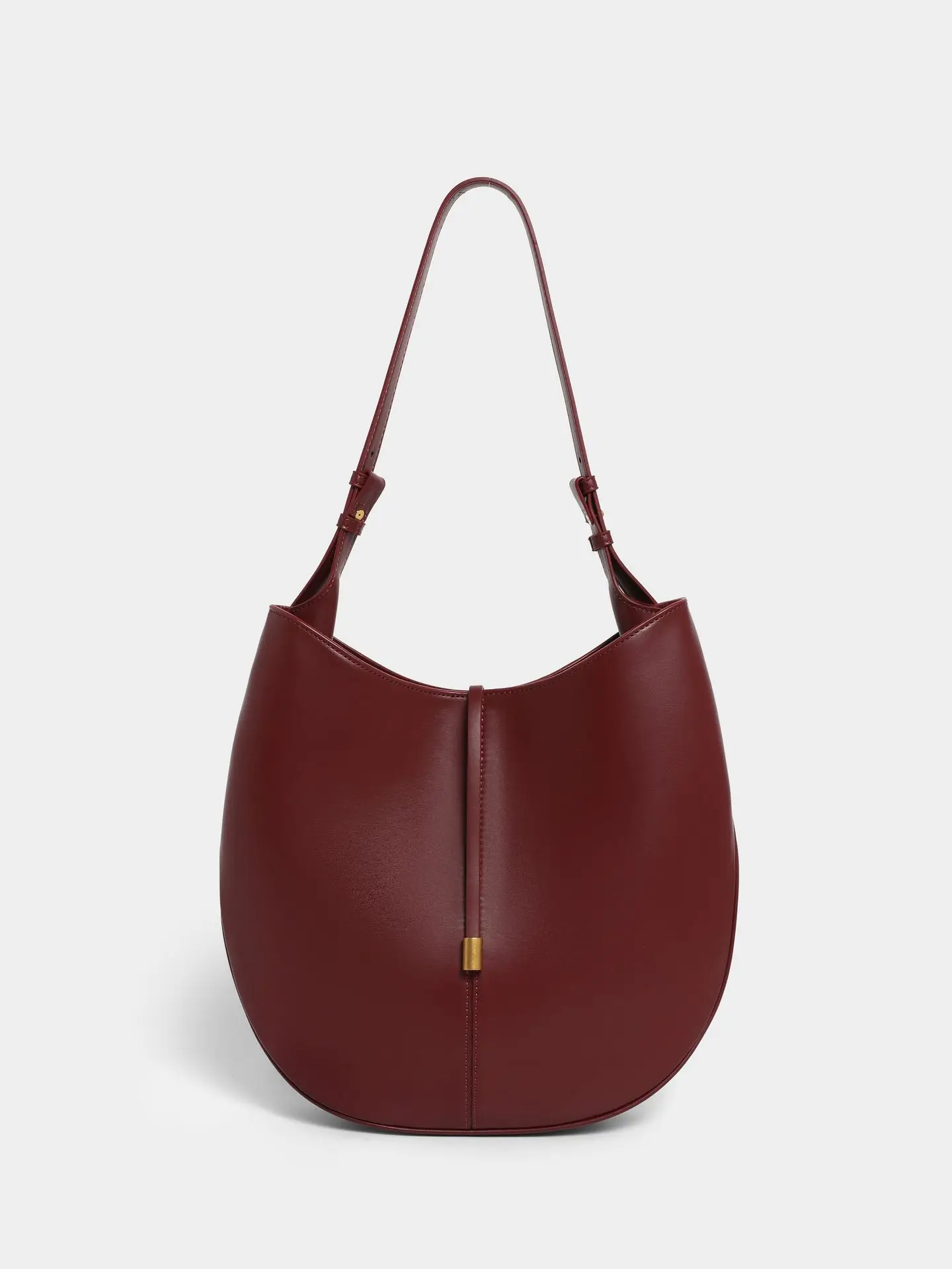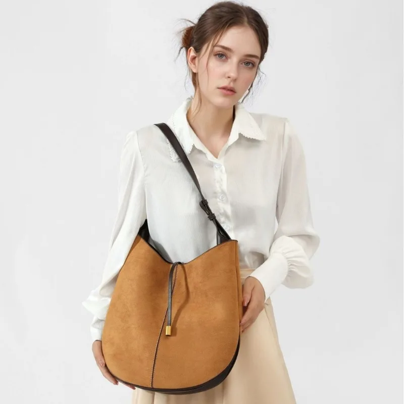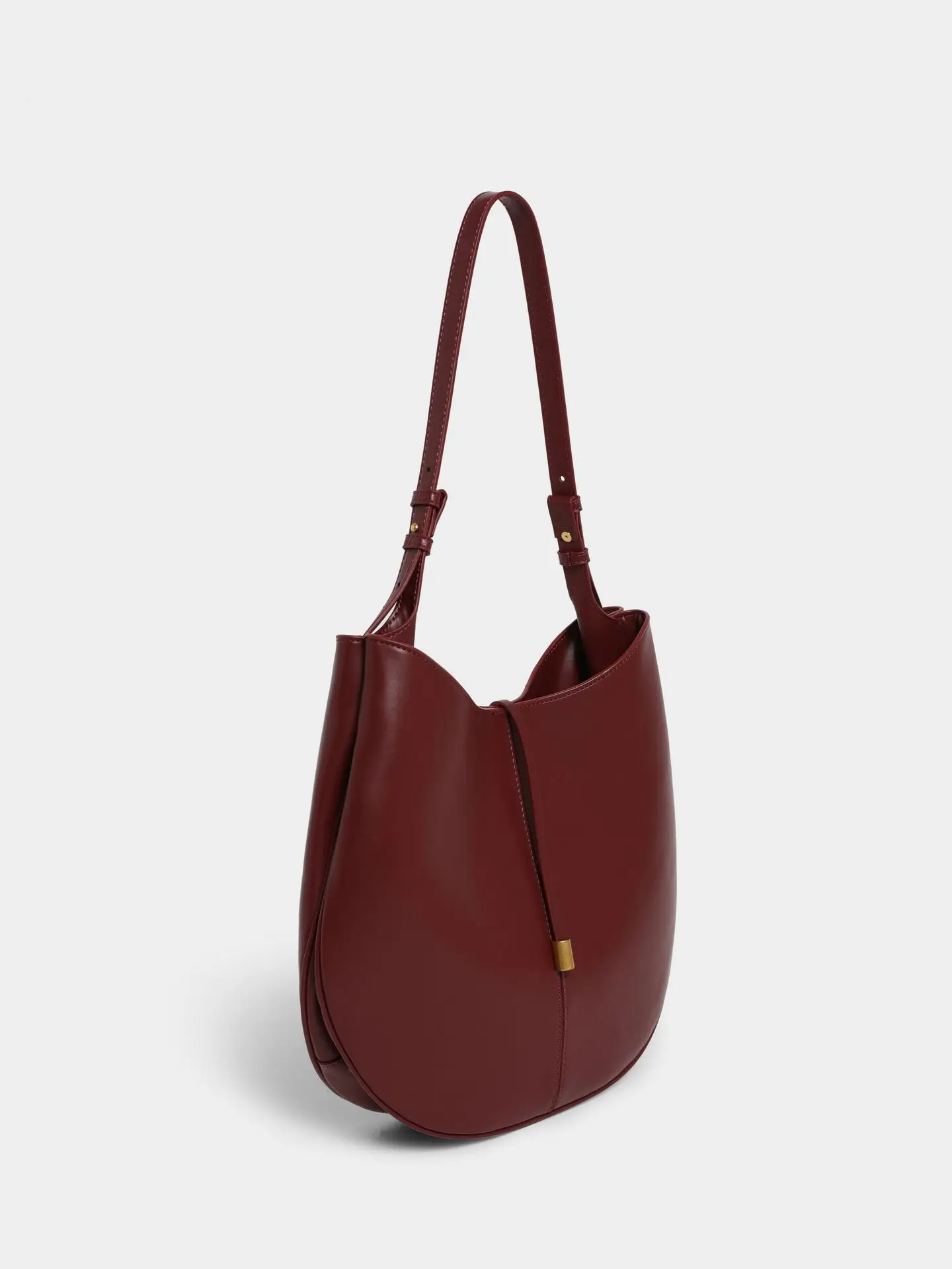 2025 New Women’s Bag Crimson Metal Accessories Pendant Single Shoulder Large Bucket Bag