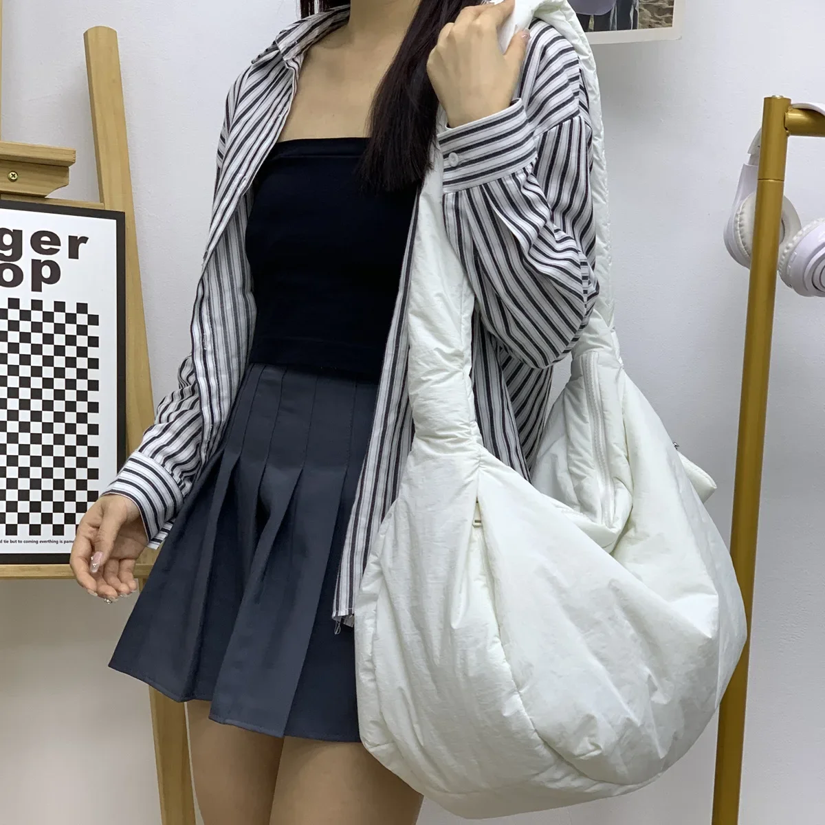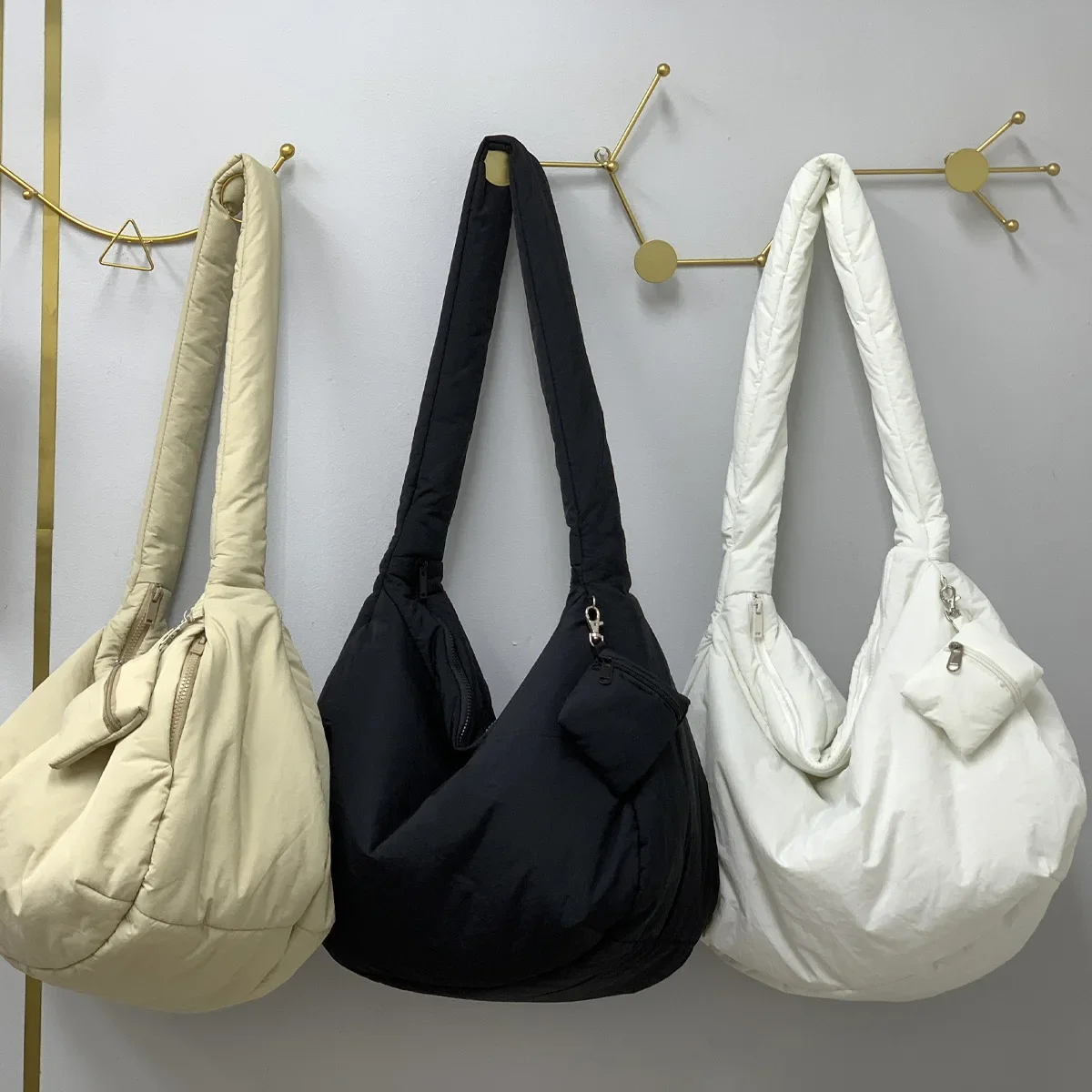Overlarge Padded Hobos Tote Winter Cotton Quilted Shoulder Bag Nylon Down Space Crossbody Bags for Women Soft Warm Shopper Purse
